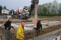 der Beton ist am Anfang gar nicht fest - aber die Burschen geben nicht auf